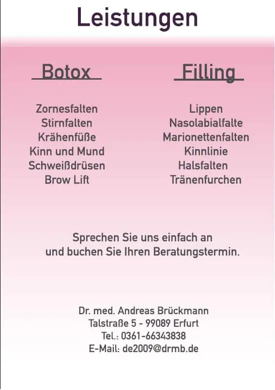 Zornesfalten – Stirnfalten – Krähenfüße – Kinn und Mund – Schweißdrüsen – Brow Lift